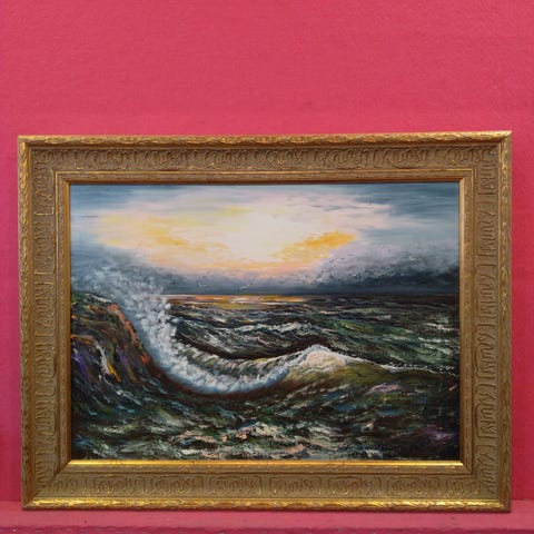 Raimo Kivelän 1989 öljyvärimaalaus Raanujärvi kehyksissä. Koko kehyksineen 67 x 91 cm.