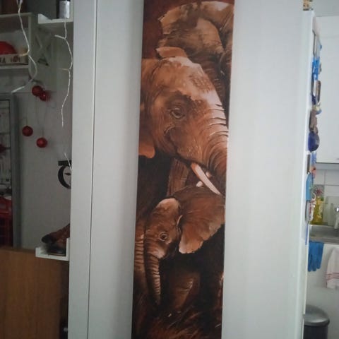 ”Sementtikehys” tekstillä Enjoy this moment, this moment is your life. Norsun kuva kehyksessä. Koko 20x25.