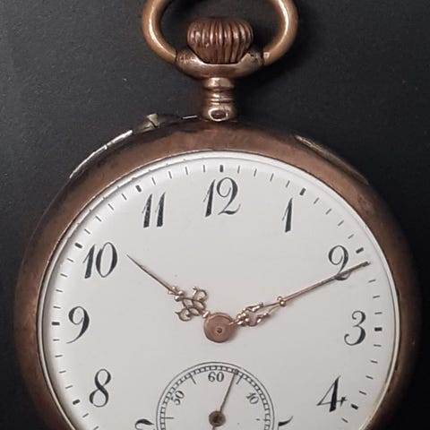 Eli kyseessä todella vanha (muistokaiverrus kellon kuoressa vuodelta 1917), mutta ikäisekseen hyväkuntoinen (tuskin toimiva, mutta ehkä kunnostettavissa) helmi keräilijälle. Katso kuvat.