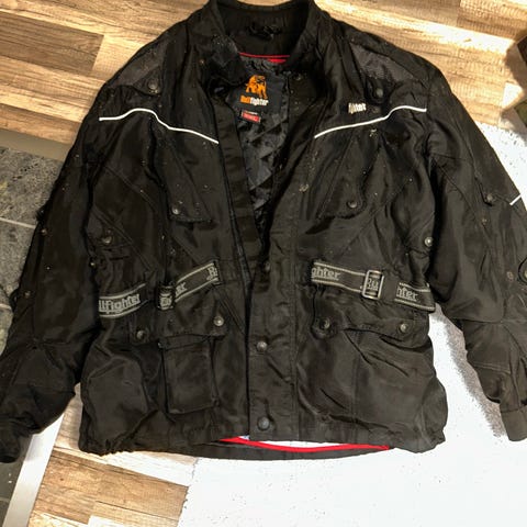 Uuden veroinen ajotakki koko XXL mutta mielestäni on L tai xlkokoa. Kaikki suojat paikoillaan.