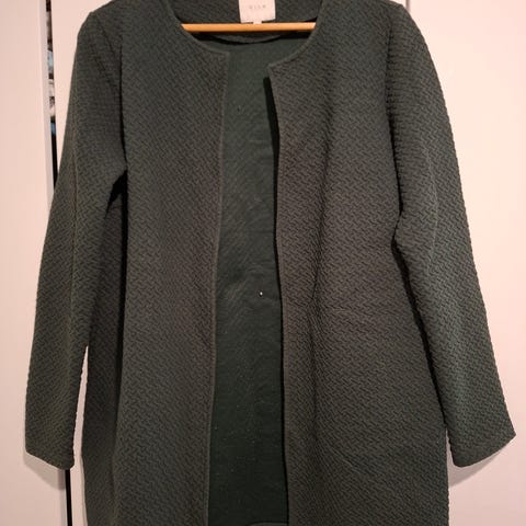Vaaleansininen Vilan jakku. Vuorillinen, tamppi takana, neljä isoa nappia. Käyttämätön.