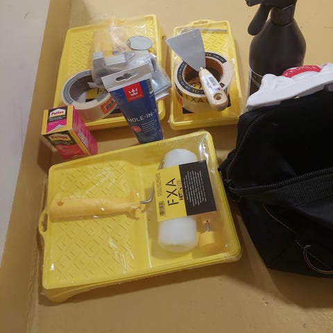 Erilaisia työkaluja lastoja merkkaus-jauho laite ym salkku mukaan.