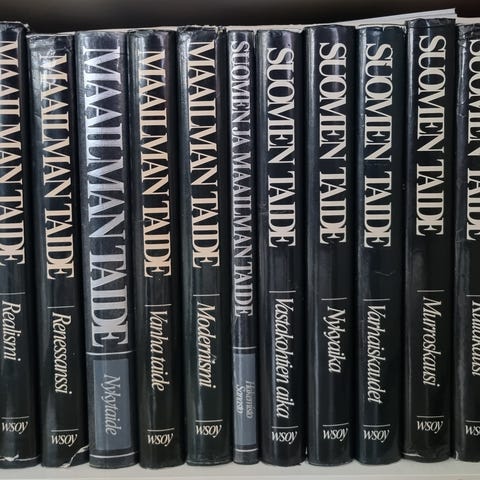 Nyt Joulutarjouksena tästä oiva joululahja taiteen ystävälle! Hinta joulukuun ajan 80€ Myydään 12 osainen Suomen- ja maailman taide kirjasarja. Hinta 100€. Sarjat voi myös ostaa erikseen, jolloin hinta 45€ sarja. Nouto ja käteismaksu.
