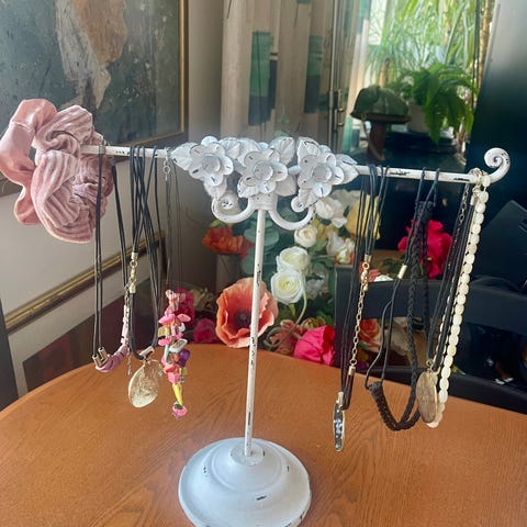Valkoiset kevyet metalliset halon kantotelineet. Kotimaista käsityötä.