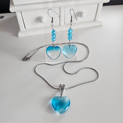 Kuvanmukaiset lasiriipukset, joista kolmessa myös nahkanauha. 3e/kpl, kympillä koko setti.