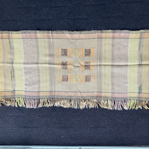 Punasävyistä vinyylitapettia ilmeisesti 1970-80-luvulta (?) kaksi rullaa, rullakoko 10,05 m x 51 cm, valmistaja Eurodec. Toisen rullan muovikääre rispaantunut ja toinen ilman käärettä, joten rullien päällimmäisessä kerroksessa noin 25 cm:n pituudelta lievästi pintavikaista tapettia.