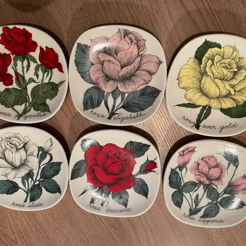 Kahvikalusto jossa 8 kuppia,8 asettia,8 leipälautasta ,kermakko,sokerikko..hankittu vuonna 1978Kaikki ehjiä ja naarmuttomia,säilytetty vitriinissä.