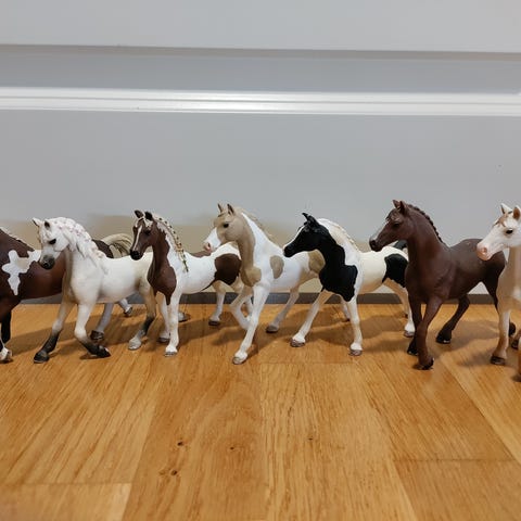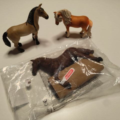 Myydään 7kpl hyväkuntoisia Schleich hevosia. Voit ostaa yksittäisenä tai useamman. Mukaan saa halutessaan pari estettä ja satulan. Satulan vyö on katkennut, joten satula mahtuu vain hevosille 1, 2 ja 3. Hevosten hinnat ovat alla ja hinta riippuu hevosen kunnosta ja harvinaisuudesta. Koko paketin hinta 65€.