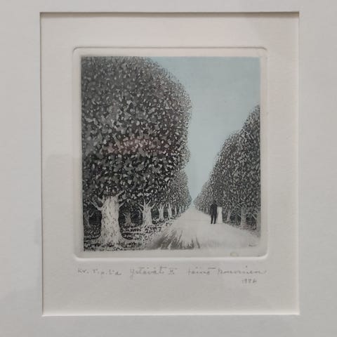Kuvan taulu siitä pitävälle tai taidetta keräävälle.Veikko Arosaran grafikkatyö vuodelta -67