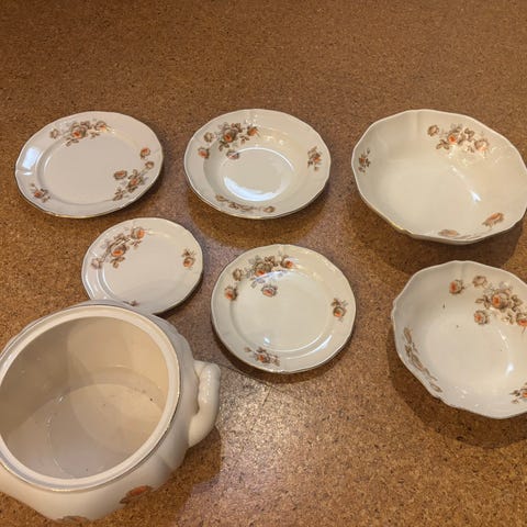 Arabian sivi sarjaa 4 kpl. Kannu, ovaali tarjoilukulho, ovaali iso tarjoilulautanen ja sillilautanen. Arabia wärtsilä finland leima pohjissa paitsi isossa lautasessa.