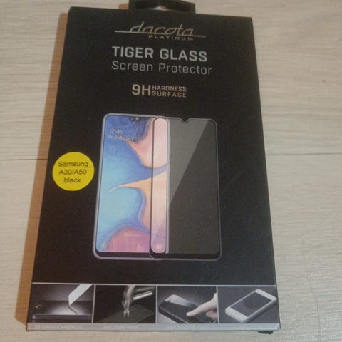 Näytön suojalasi Samsung A30/A50 (Dakota platinum Tiger Glass, mustat reunat)