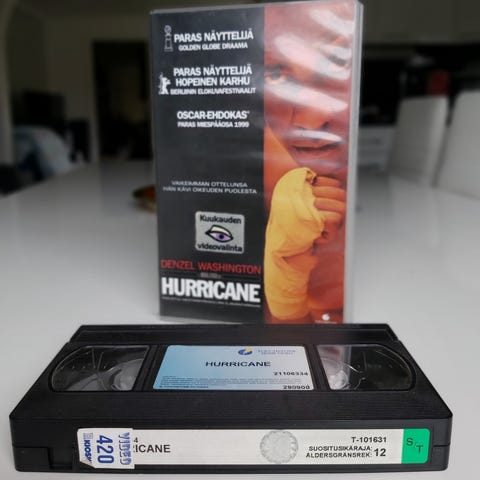 Myydään kuvissa oleva The Hurricane -elokuvan VHS. Pitäisi toimia, mutta koska meillä ei enää ole VHS-nauhuria, en pysty tarkistamaan.