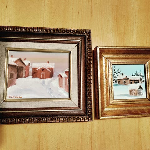 Yhden taitelijan öljyvärimaalaukset. Signeraus ei ole kovin selkeä: itäeurooppalainen?. Espoo-Lappeenranta.