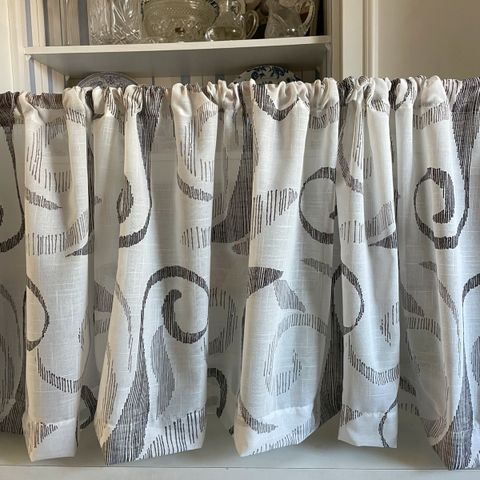 Myydään siisti ja ehjä verhokappa. Leveys 122 cm. Ripustus nyöreillä saa säädettyä korkeutta