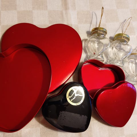 Kannellinen kaunis sydän purkki. Siisti ja ehjä. Korkeus 10cm.
