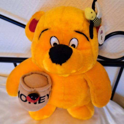 Tosi söpö valkoinen nalle- pehmolelu tai koriste. Selkä puolella tassuissa punainen sydän, jossa lukee I'm sweet on you! Erittäin hyväkuntoinen.