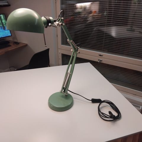 Myynnissä upea vihreä pöytälamppu kelta/valkoisella varjostimella