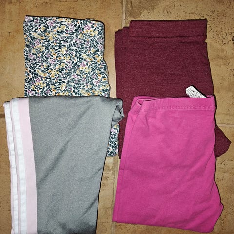 Käyttämättömät leggarit, laputkin vielä irroittamatta. Viinipunaiset. Koko 140. Adidas merkkiset.