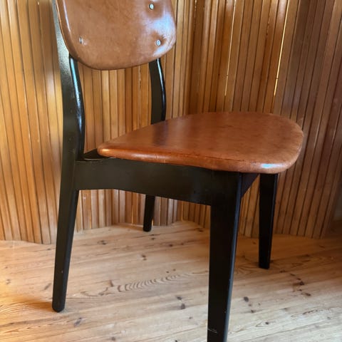 Kaunis kuin karamelli,kauttaaltaan puuta,istuinosan päällyste aitoa keinonahkaa.