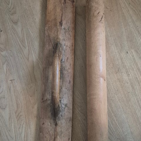 Mankelilaudan pituus 64 cm, tukin pituus 58 cm. Ajanmukainen kunto, olleet säilytyksessä hyvin ilmastoidussa ulkovarastossa.