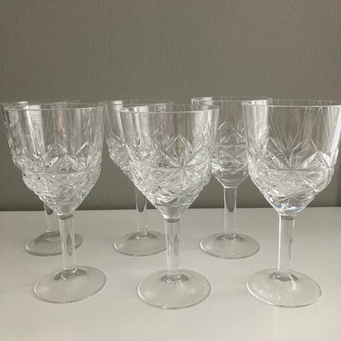 Todella kauniita hiottuja liköörilaseja 6 kpl. Virheettömiä. Korkeus 14,5 cm. Voin postittaa.