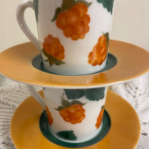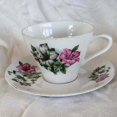Kullattu vintage tyylinen teekuppi ja lautanen