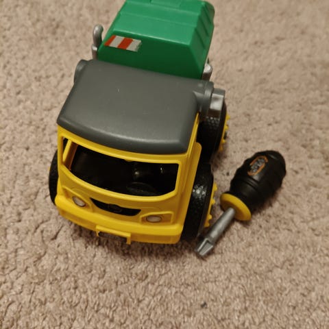Myydään oranssin värinen new trukkipiikit merkkinen roskaauto. Ja roskis. Takaa vähän rikki. Saa liimaamalla korjattua. Roskia pysyy silti kyydissä