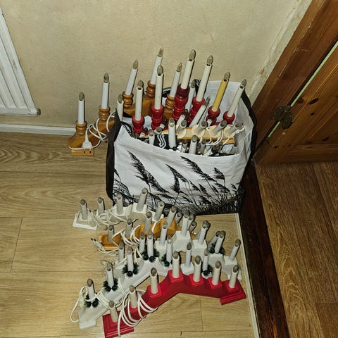 Kaunis todella vanhan näköinen kynttilä (voi olla vanha?), jossa on rusetti ja joulunkello. Kynttiköitä on 2 kpl, mutta toinen on poikki ylhältä noin 5 cm päästä, sen saa kaupanpäälle.