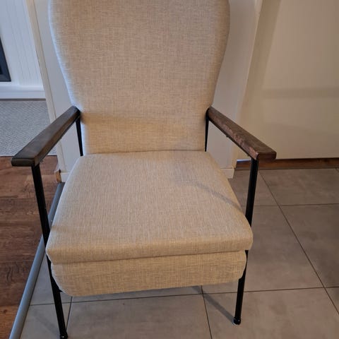 Ehjä vintagetuoli, iänmukaista kulumaa ja jälkeä. Leveys 80 cm, syvyys 80 cm, istuinkorkeus 40 cm, korkeus 75 cm.