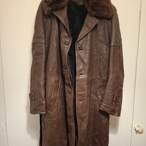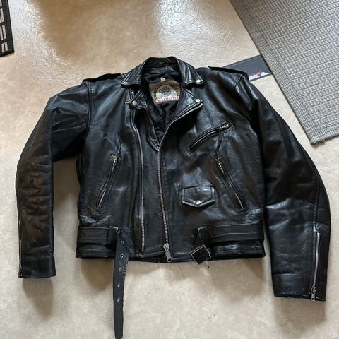 New Yorkista hankittu ja paljon käytetty erittäin katu-uskottava musta nahkarotsi, kokomerkintä L, mutta ei kovin iso, voin lähettää mittoja, jos kiinnostaa.