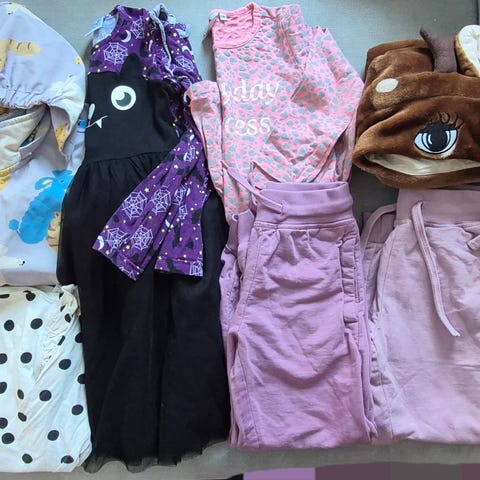 Pakettina vaatetta tytölle.