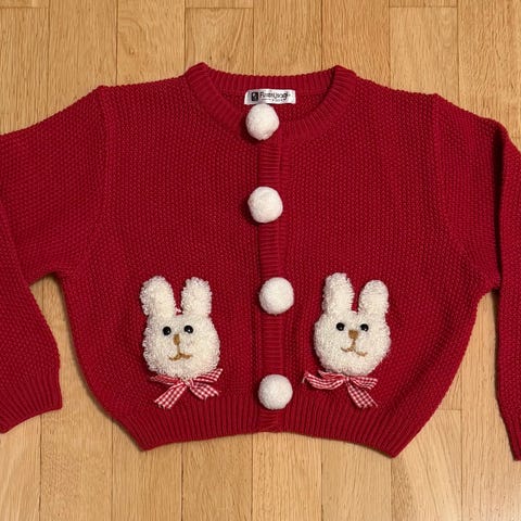 Pääväri pinkki, oranssinpunaista sekä hihansuissa keltaista. Ihana kissakuvio. Kiinnitys edestä yhdellä napilla.
