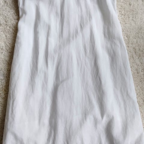 Chiemseen valkoinen pellavahame. Koko S. Takana vetoketju ja sivussa aplikointi. Vyötärö 39 cm, pituus 50 cm.