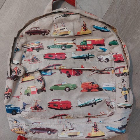 1) Cars-aiheinen kerhoreppu, jossa kuva muuttuu toiseksi, kun kuvaa kääntää eri kulmaan. Repussa jonkin verran käyttöjälkiä, mutta ehjä ja yleisilmeeltään siisti. Hinta 4 e.