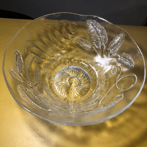 Arabia Oiva Toikka Pioni iso lasikulho. Halkaisija 26 cm, korkeus n. 11 cm. Kaiverrus.