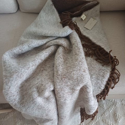 Myydään kuvan ERNST Torkkupeitto 170x130 cm. Pellavan värinen, 70 % puuvillaa/30 % pellavaa.