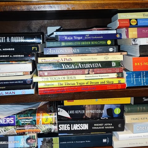 Hakusanat: Mielikki Ivalo - Jooga - Tie terveyteen ja uuteen elämään - Seepra 34 -1970, Martin Kusch - Ymmärtämisen haaste 1986, urheiluvammat 1990, tanssi, tanssiliikunta 1981, saksankieliset yoga-kirjat 1980-luku, etiikka 1991, Etiikka 1996, tanssi ja urheiluvammat, Ursula Mangoldt- Yoga Heute- Hilfe für den Westen 1981, Selvarajan Yesudian - Selbsterziehung durch Yoga 1969, Kareen Zebroff - Schön und schlank durch Yoga 1979, Kaksi Prometheus kirjaa -Hautamäki - Ydintrauma -87 ja Manninen & Patoluoto -Hyöty - sivistys - kansakunta- Suomalaista aatehistoriaa - 89, Sampo 3 -Tekniikan Saavutukset - nuorison värikäs tiedonlähde 1963, Saksankielinen valokuvakirja Sveitsin Alpeilta 'Luzern- Rigi und Alpen'-24 kpl värivalokuvia 1930-40-luvuilta, Jouko Aho - Sieluun piirretty viiva, Psykologisia piirteitänsuomenkielisestä sielutieteestä kokeelliseen kasvatusoppiin, Prometheus 1993,