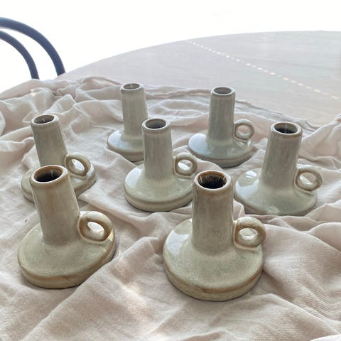 Kaksi kynttilänjalkaa ja maljakko, korkeudet maljakko 21 cm ja kynttilänjalat 15 cm. Maljakon toisen linnun pyrstö on lyhentynyt matkan varrella.