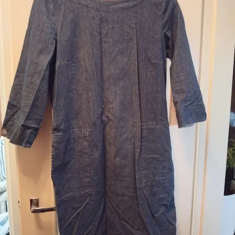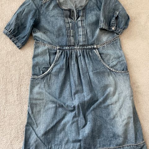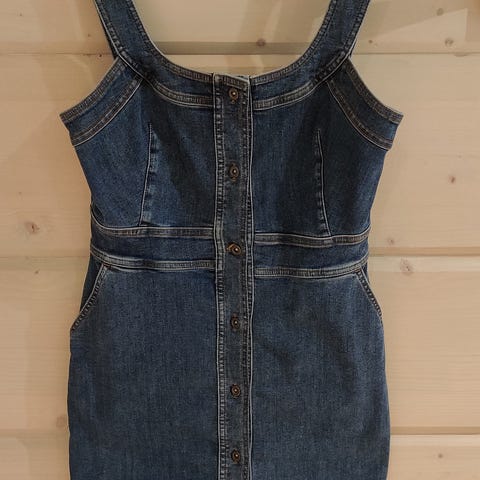 Siistikuntoinen lyhythihainen farkkumekko. Koko 40. Materiaali ohuehkoa pehmeää farkkukangasta.