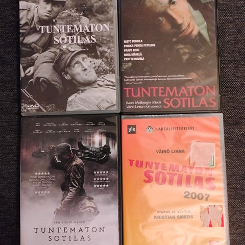 -Edvin Laineen vuonna 1955 ohjaama dvd-elokuva Tuntematon Sotilas. Mustavalkoinen, kesto 2 h 49 min. Elokuva on ohuessa muovikotelossa.
