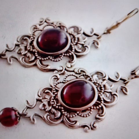 Käsintehty pitsinen sormus. Koko noin 17. Kukka noin 25 mm. Punaisen sävyjä, burgundi tai viininpunainen ja kirkkaanpunainen. Virolainen valmistaja, jonka tuotelappu kiinni korussa tummalla langalla eli uusi, käyttämätön.