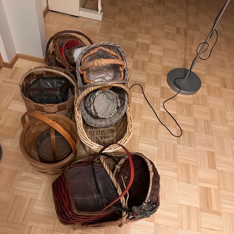 Myydään siisti pajukori, jota käytetty sukkien, lapasten ja myssyjen säilytyksessä ja käytössä. Tämä kori kokoaa ja kaikki on aina löydettävissä ja kuivina isossakin perheessä.