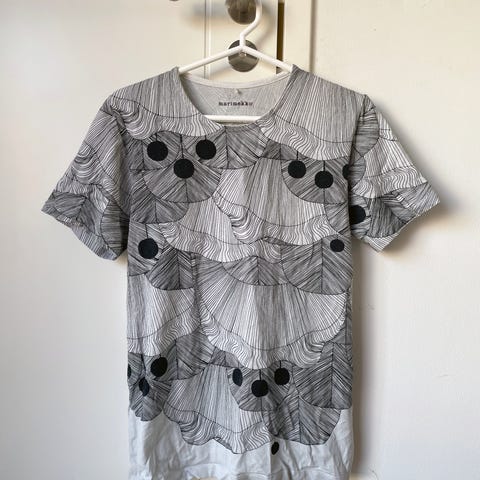Myynnissä Marimekon paita, koko S. Paita on siisti ja hyväkuntoinen. Materiaali 95 % ja 5 % elastaani. Mitat kainalo-kainalo 42 cm ja niska-helma 56 cm. Ostajalle postikulut 3,80 tai nouto Ruoholahdesta.