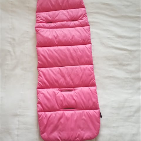 Toisen puolesta myyntiin Brio Sitty-mallin eli perusmallisten avorattaiden istuinpehmuste. Aukot olkahihnoille sekä haaravyölle, takapuolella kuminauhallinen läppä pitämässä paikoillaan selkänojaa vasten. Kysy jos tarvitset mittoja toisen mallisia/merkkisiä rattaita varten.