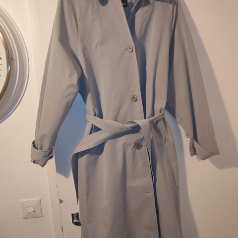 Trenssitakki, musta tekonahkaisilla yksityiskohdin. Hyvässä kunnossa.