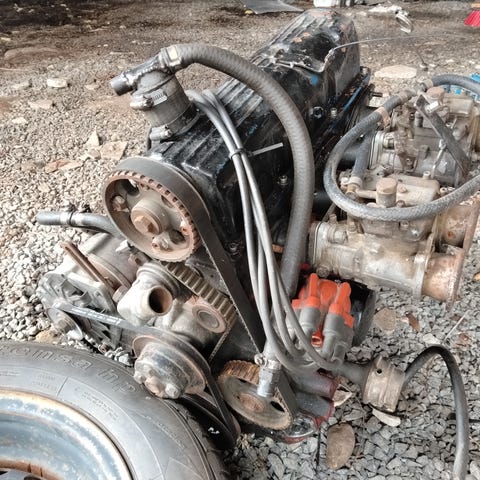 Takalasi, takapuskuri ja ohjauksen osia koko eturunko eli navat jarruineen ja simpukka.