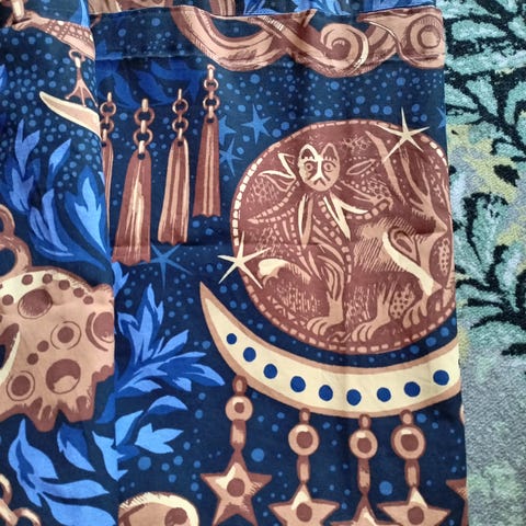 Voidaan toki ripustaa myös "nipsuilla". Alareunoissa 23cm taitos,josta saa lisää pituutta.