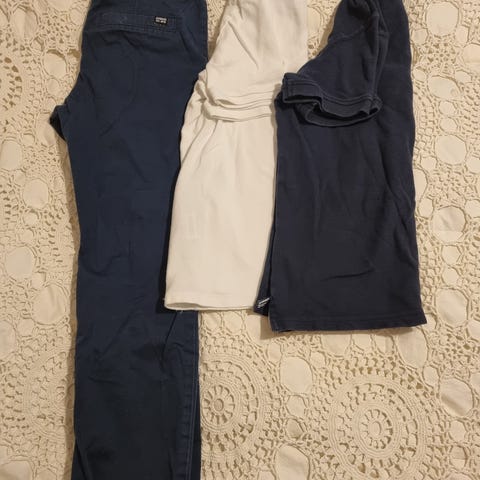 Hyväkuntoiset, pehmeät tummansiniset chinot koko 128cm. Toisessa polvessa aavistus kulumaa, mutta se ei juurikaan näy.