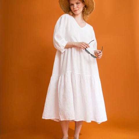 Myydään vähän käytetty Pura Finlandian valkoinen pellavamekko koossa M/L.
