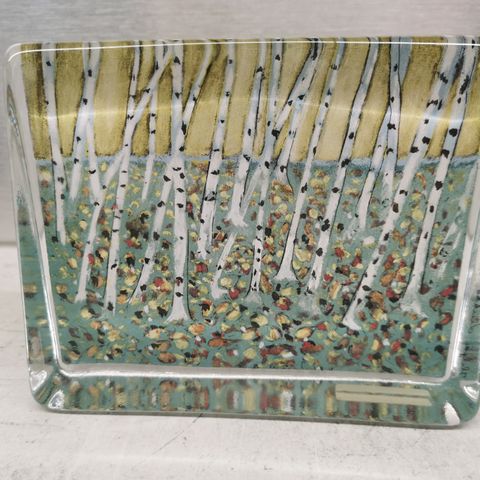 Heljä Liukko-Sundströmin lasikortti Suomen Suvi. Koko on 8,5*9 cm